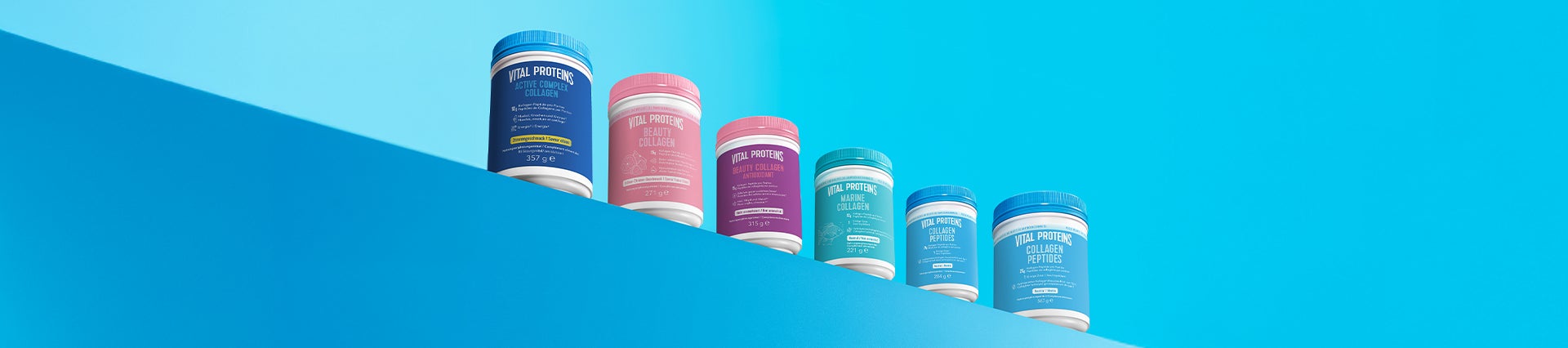 Les peptides de collagène de Vital Proteins proviennent de peaux de bovins ou de poissons et contiennent donc principalement du collagène de type I et une faible teneur en collagène de type III. Nous vous proposons une variété de produits adaptés à différents régimes alimentaires. Que vous préfériez des peptides de collagène purs sans additifs ou des produits à base de collagène avec goût ainsi que des vitamines et minéraux – nous avons l'option qui vous convient. Choisissez le produit qui répond le mieux à vos besoins !